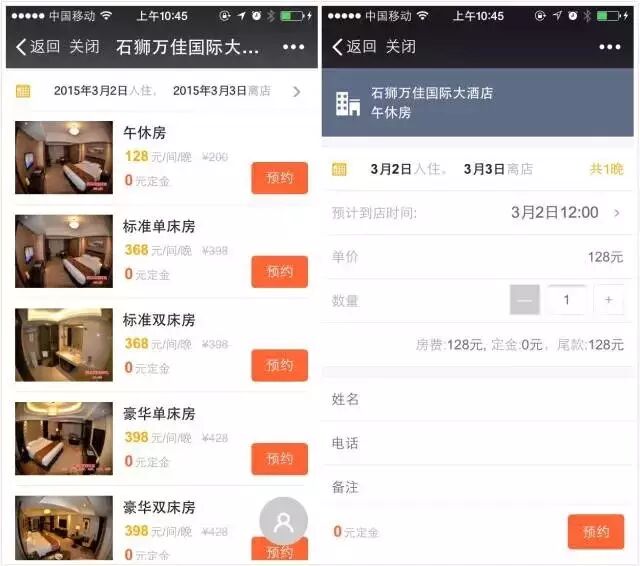 关注“wxfwpt”回复“酒店预约”体验